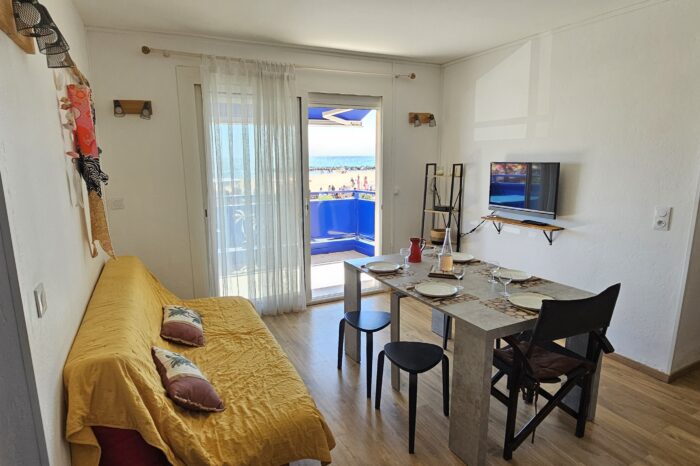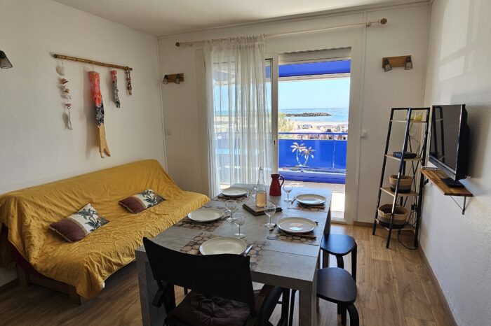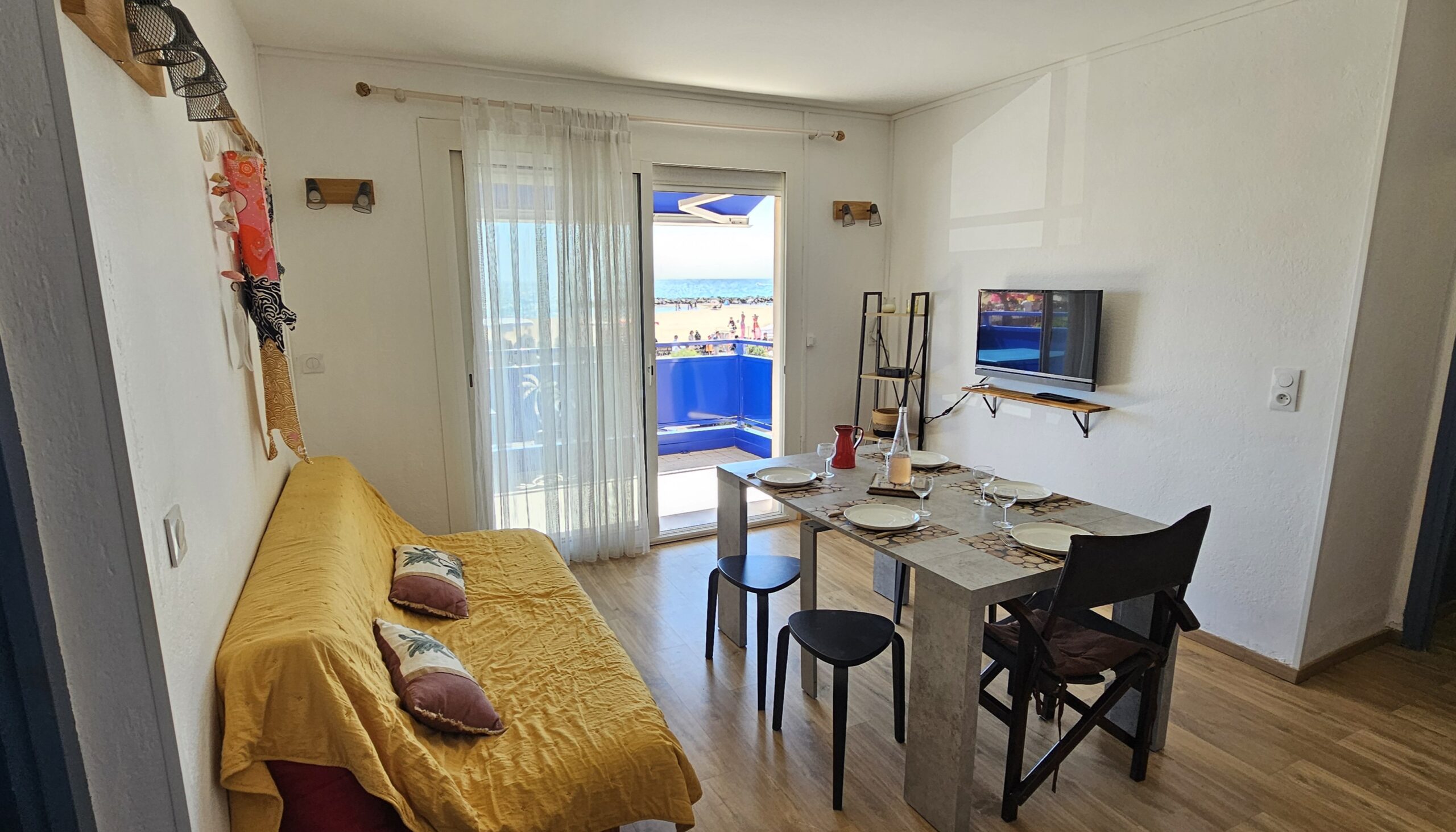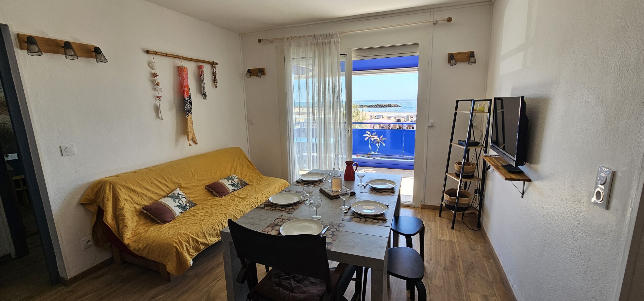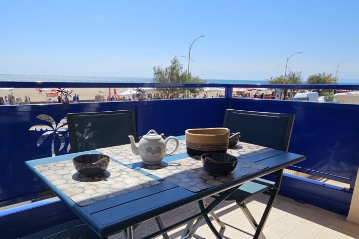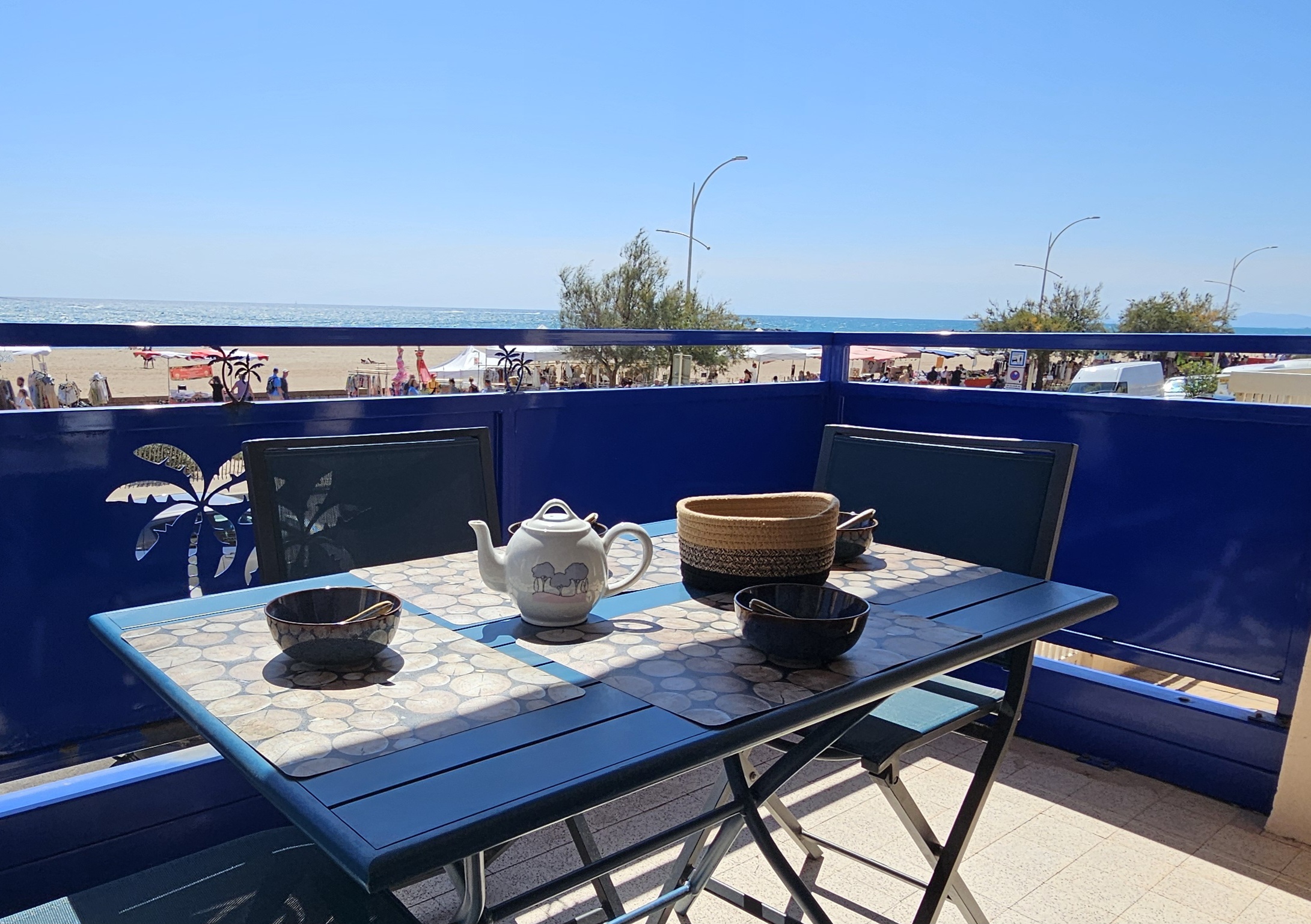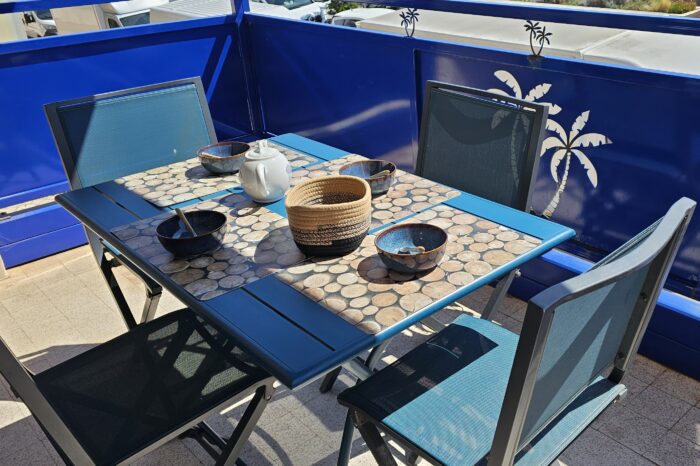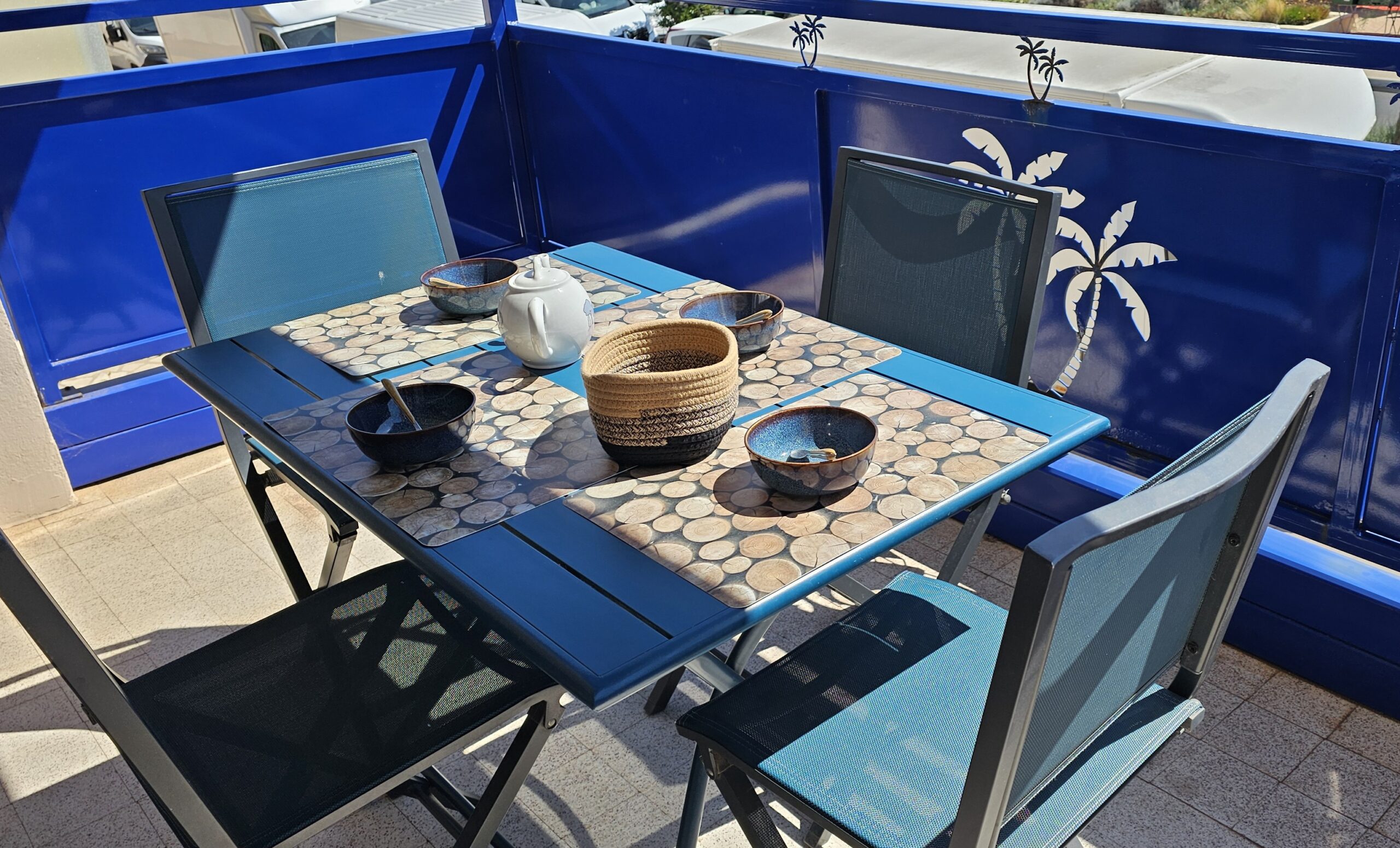 - Terrasse vue sur la mer avec table extérieure et store banne.